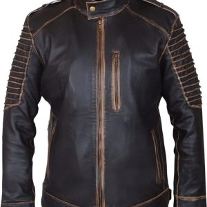 MENS DISTRESSED BIKER QUILTED REAL LEATHER JACKET