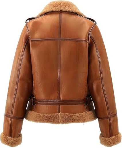 WOMEN BROWN AVIATOR FUR SHEARLING LEATHER JACKET