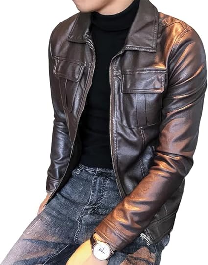 • Timeless & Stylish: Classic brown geniune leather jacket with a sleek, slim-fit design for a modern look.
