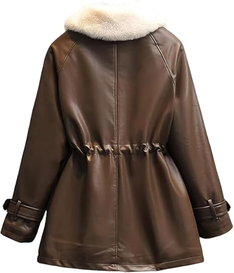 • Elegant Design: Chic leather-look coat with a luxurious geniune fur collar for a sophisticated winter style.